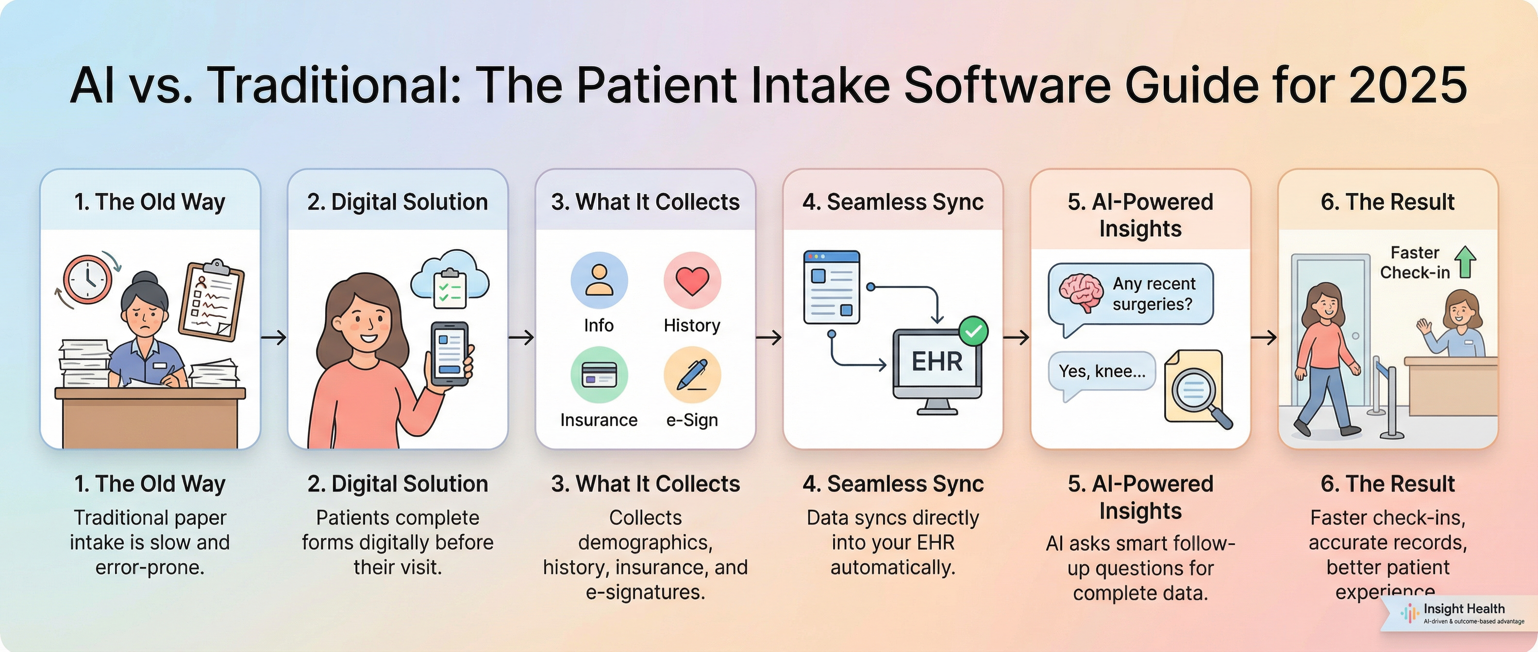 Insight Health integrates with your existing EHR and adds AI-powered intake on top. If you are happy with your current EHR and want to add automation without replacing your tech stack, this approach makes sense.
